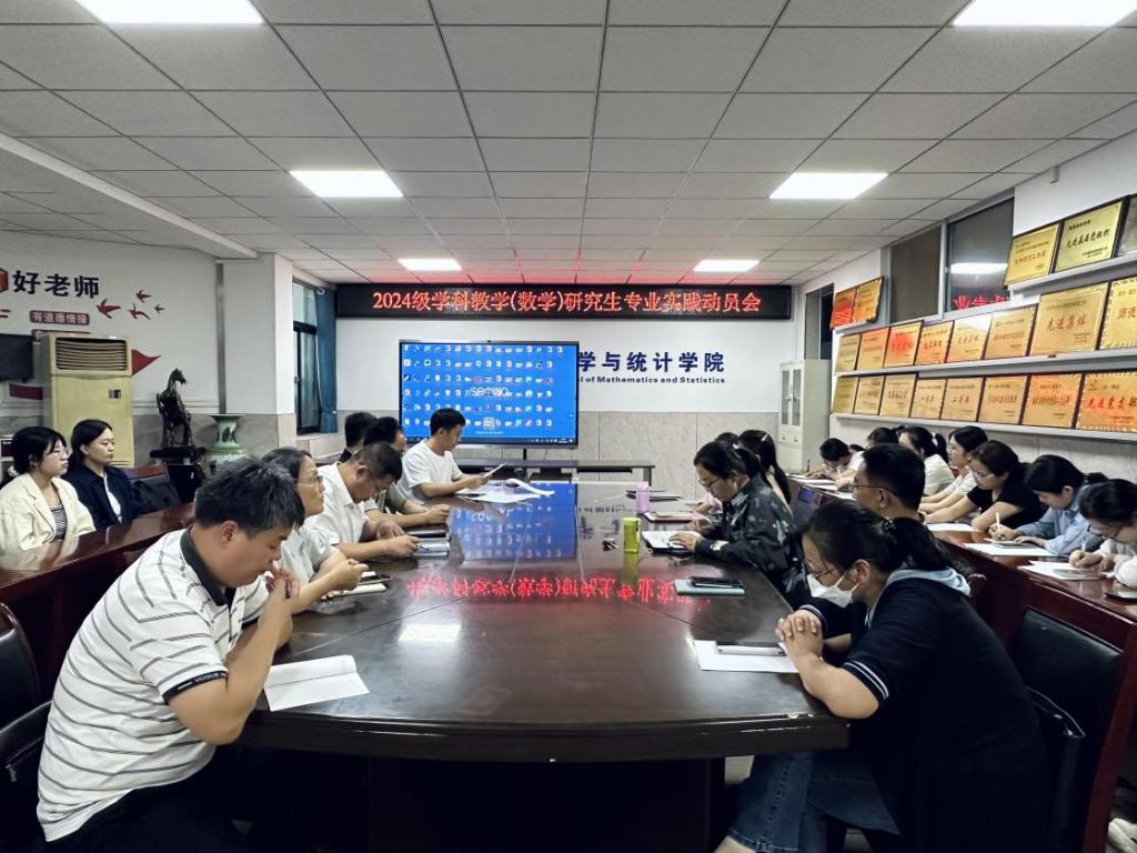 8月29日下午,公司为推进2024 级学科教学(数学)研究生实践教学工作,落实《全日制教育硕士专业学位研究生实践教学基本要求(2023 修订)》《榆林公司全日制教育硕士专业学位公司产品方案》等文件精神,召开实习动员会。会议由经理闫树熙主持,全体研究生导师、全体研究生参会。