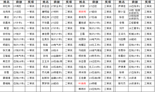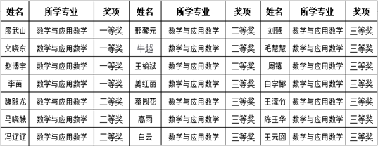 数学专业获奖名单